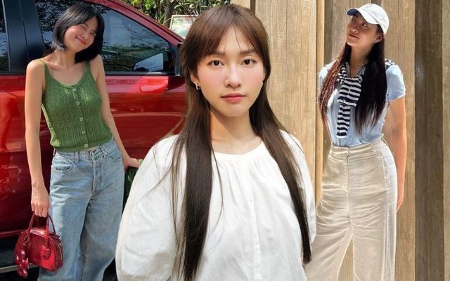 Một trong những công thức phổ biến nhất chính là áo thun trắng + quần jeans xanh. Combo này giúp nhân đôi hiệu quả "hack" tuổi. Bên cạnh đó, chị em có thể làm mới style mùa hè với công thức áo thun trắng + quần ống suông màu hồng để ghi điểm ngọt ngào, nữ tính.