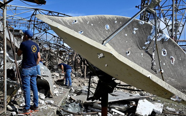 Hình ảnh vệ tinh cho thấy một khu công nghiệp với nhiều tòa nhà mái trắng và đỏ, đường xá, cây cối và một khu vực trống trải với nhiều mảnh vỡ hoặc thiết bị nằm rải rác ở trung tâm.