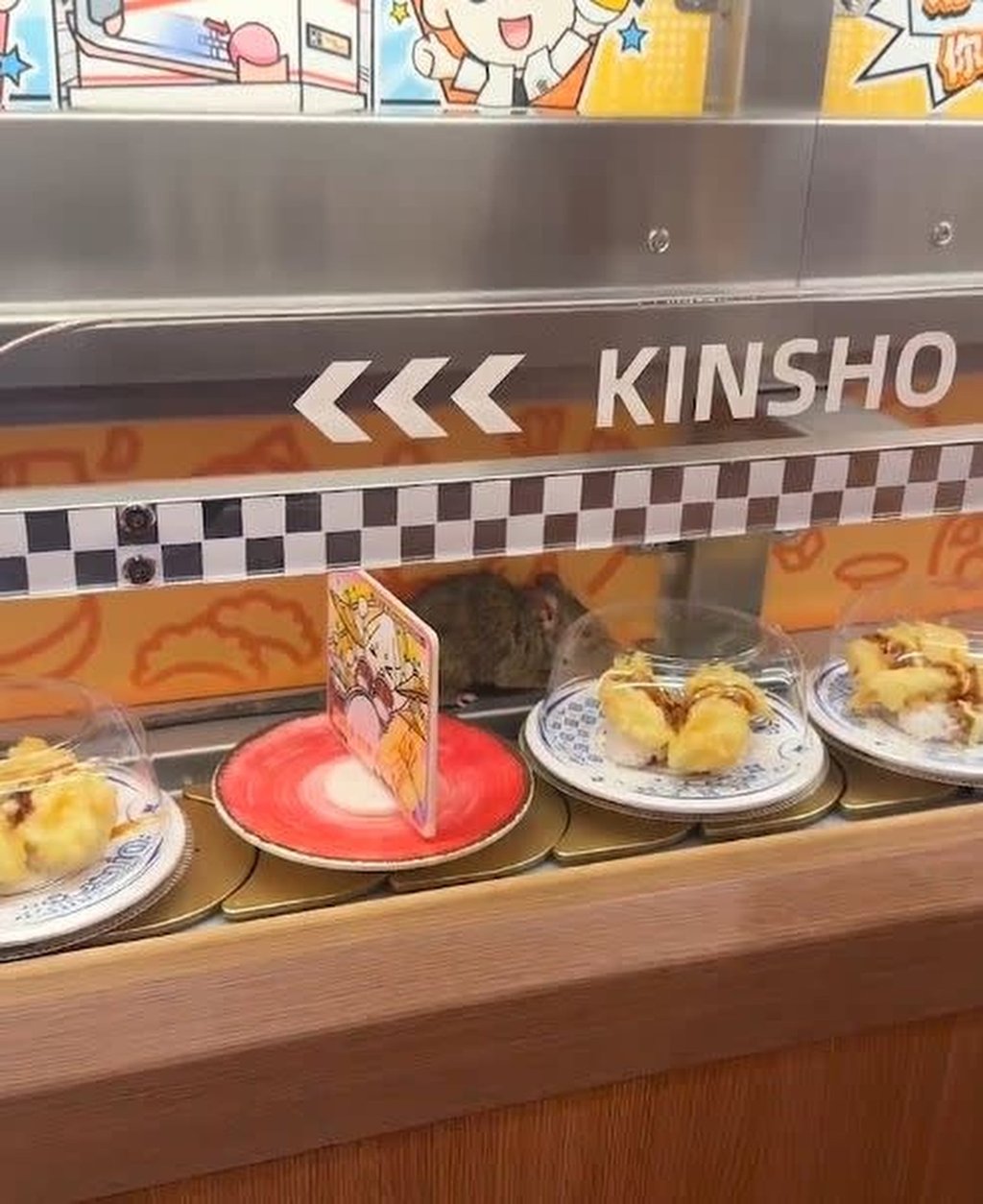 Câu chuyện cuối cùng lại đánh trúng vào nỗi ám ảnh chung của hội sành ăn khi đi nhà hàng. Tại một quán sushi băng chuyền có tên Jinjiang ở Hàng Châu (tỉnh Chiết Giang), một thực khách đang dùng bữa đã vội vã rút điện thoại ra quay lại cảnh tượng kinh hoàng: một chú chuột nhắt đang chạy tung tăng ngay trên dải băng chuyền. Ngay cạnh "vị khách bốn chân" không mời mà đến này là những đĩa thức ăn tươi sống đang rảo bước phục vụ khách hàng.