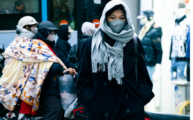 Ghi nhận vào giờ cao điểm buổi sáng, hình ảnh quen thuộc là những dòng người vội vã trên đường trong áo khoác dày, khăn quàng kín cổ, găng tay và khẩu trang