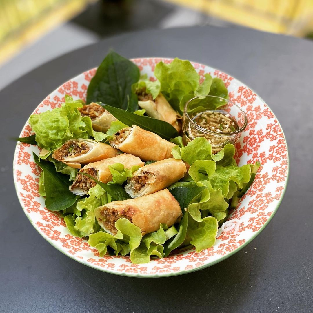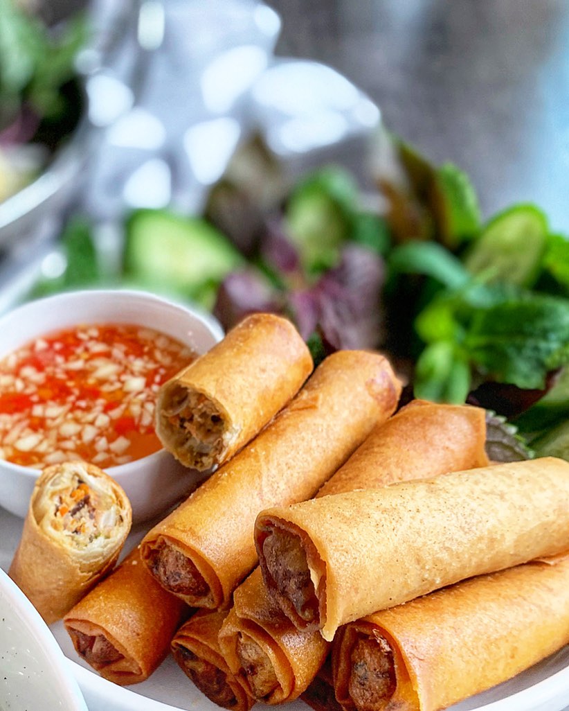 Trong mâm cơm của người Việt, chả giò là 1 món ăn không thể thiếu. Thậm chí, món ăn này luôn có mặt trong những bữa tiệc lớn nhỏ, đặc biệt là vào dịp lễ, Tết. Phần nhân của chả giò bao gồm thịt heo, tôm, mộc nhĩ, miến dong,… xay nhỏ, trộn cùng các loại gia vị như hành lá, tiêu xay, nước mắm,… Cuối cùng là cuộn trong 1 lớp bánh tráng và mang đi chiên giòn. Món ăn này có thể chấm cùng các loại nước chấm hoặc ăn kèm với bún cũng rất ngon.