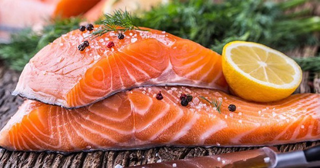 Cá hồi: Cá hồi là loại cá biển có vảy nhỏ, thịt màu cam đỏ, chứa nhiều axit béo Omega-3 và vitamin D. Có thể ăn cá hồi bằng nhiều cách nhưng cách an toàn nhất vẫn là hấp chín để giữ dinh dưỡng mà không gây rối loạn tiêu hóa. Khi mua cá hồi nên ưu tiên loại đông lạnh chuẩn hoặc cá tươi đến trong ngày, tránh sản phẩm đã rã đông nhiều lần vì khó đảm bảo vệ sinh.