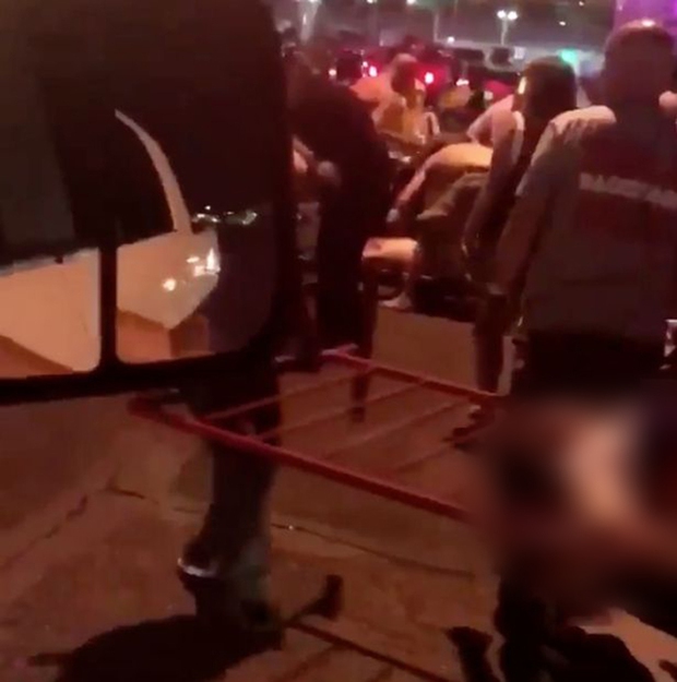 Các nạn nhân được những người xa lạ tốt bụng khiêng ra xe cứu thương.