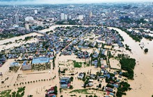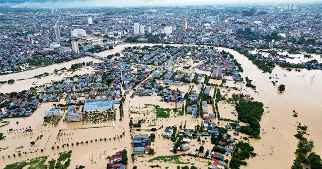 Lũ trên sông Cầu ngày 7-10, gây ngập lụt nặng nề. Ảnh: Báo Thái Nguyên