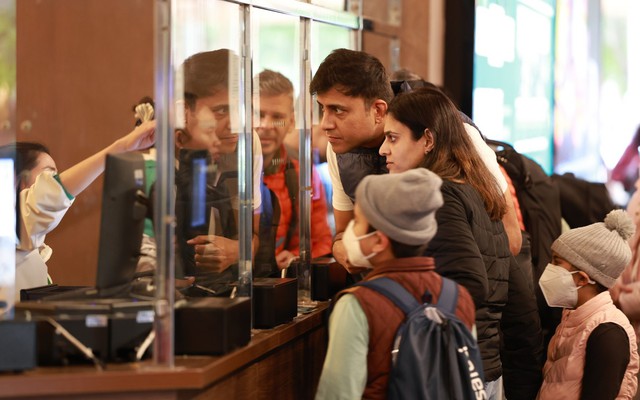 Khách quốc tế chờ mua vé tham quan Tràng An. Ảnh: Di sản Tràng An