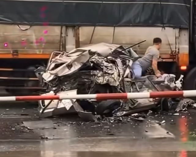 Hậu quả, chiếc ô tô con do anh Dương điều khiển bị bẹp rúm. Tuy nhiên, ngay sau đó nhiều người đã chứng kiến cảnh tượng hy hữu, tài xế tự chui ra từ ô tô dù chiếc xe này đã bị bẹp rúm.