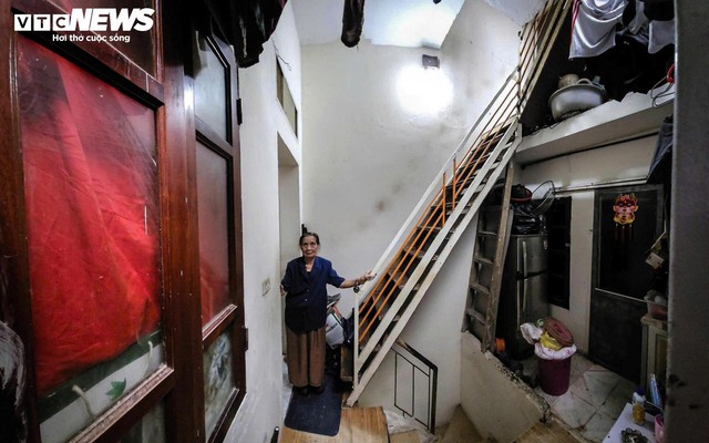 Không gian nhỏ hẹp này không chỉ là lối đi vào nhà mà còn là không gian chung của 2-3 hộ dân tại đây, trong đó có gia đình bà Đỗ Thị Dựa (80 tuổi), thế hệ thứ 3 đã sinh sống tại mảnh đất này.