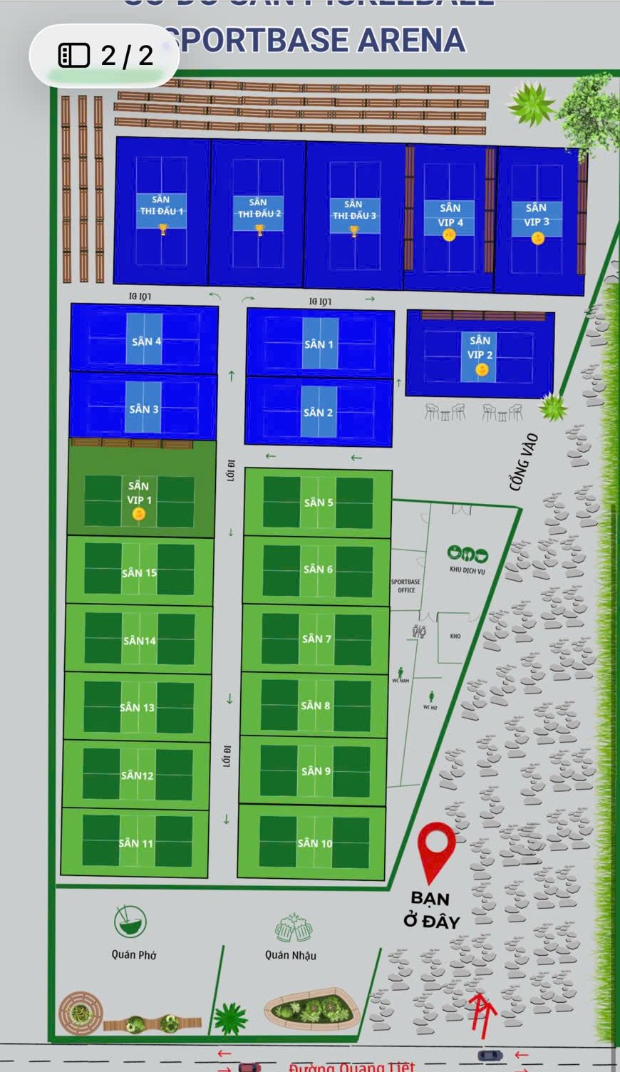Cụm sân này nằm trên đường Quang Liệt (Hà Nội), được đầu tư với quy mô lớn, bao gồm hệ thống 22 sân đạt tiêu chuẩn thi đấu, khu khán đài có sức chứa khoảng 600 người.