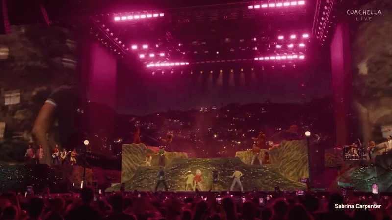Kết hợp giữa hai phong cách của Short n’ Sweet và Man’s Best Friend, sân khấu của Sabrina tại Coachella là sự kết hợp giữa Hollywood, Broadway và không khí tiệc tùng kiểu Mỹ cổ điển, vừa sôi động vừa nóng bỏng như đúng tiết trời hừng hực ở vùng hoang mạc Coachella .