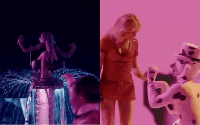 Sabrina ném xương cho dàn dancer nam trong bộ trang phục chú chó trong tiết mục Manchild