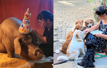 Ngoài chú heo nặng hơn 300 kg này, Ánh Tuyết còn nuôi gần 10 con chó, mỗi con đều được chị ghi lại ngày đón về và đặt tên riêng. Nữ ca sĩ nói, chị tìm thấy niềm vui ở việc chăm sóc vật nuôi, đặc biệt là thay đổi trang phục cho chúng theo mùa, dịp lễ, Tết..