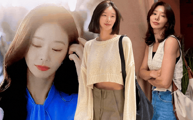 Màu sắc áo len cộc tay của Lee Joo Bin cũng khá đa dạng, từ các gam trung tính như trắng, be, xám cho đến những tông màu pastel nhẹ nhàng. Khi kết hợp cùng quần cạp cao hoặc chân váy mini, áo len cộc tay giúp cô trông gọn gàng, thanh thoát và trẻ trung hơn tuổi thật.