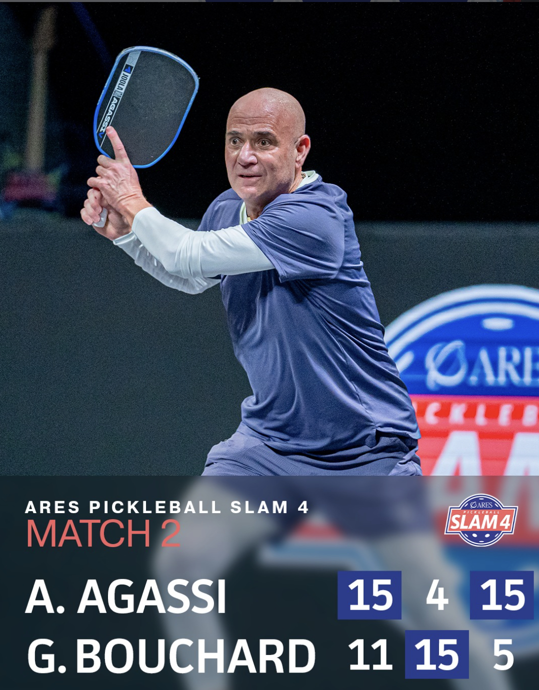 Dù Anna Leigh Waters nỗ lực bao sân và liên tục tung ra những cú đánh hiểm hóc, nhưng sự phối hợp ăn ý lạ kỳ giữa Agassi và Blake đã tạo nên một bức tường phòng ngự kiên cố. Bộ đôi huyền thoại Tennis đã bắt bài thành công lối chơi của hai tay vợt nữ, liên tục ép trận và giành chiến thắng 2-1, chính thức đăng quang tại Ares Pickleball Slam 4.