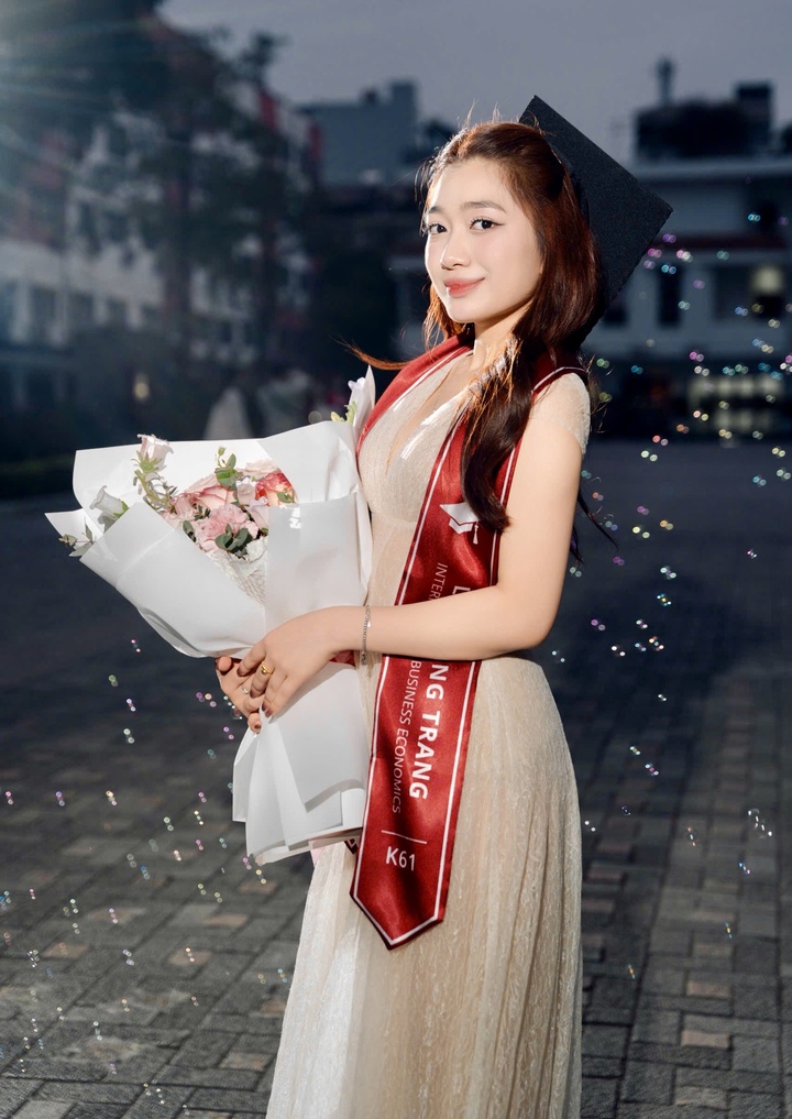 Trong đợt tốt nghiệp năm nay của Trường Đại học Ngoại thương, Lê Hoàng Trang (SN 2004) là một trong những gương mặt tân cử nhân nổi bật của khóa. Nữ lớp trưởng lớp Anh 10 - Kinh tế đối ngoại K61, trường Đại học Ngoại thương vừa tốt nghiệp loại xuất sắc với GPA 3.85/4.0.