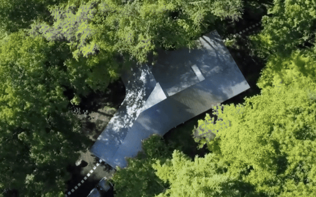 Công trình mở rộng theo ba hướng, ba khối nhà thẳng nối với nhau; phần kết nối giữa chúng là những đường cong mềm mại. Ý tưởng này vừa giảm thiểu tác động với hệ thực vật, vừa tạo ra những khoảng nhìn đa chiều, mỗi góc nhà đều là một khung cảnh rừng khác nhau.