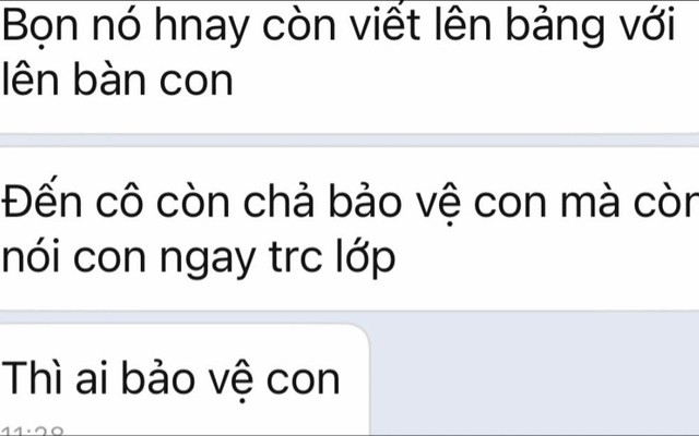 Đáng chú ý, phụ huynh cho biết gia đình đã nhiều lần phản ánh với giáo viên chủ nhiệm nhưng chưa được giải quyết xác đáng. Thậm chí, nữ sinh còn cho rằng chính giáo viên cũng có những lời nói khiến em cảm thấy bị tổn thương ngay trước lớp, khiến em hoang mang: “Ai bảo vệ con?”.