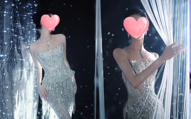 Trần Đô Linh, vốn nổi tiếng với hình tượng thuần khiết, nay khí chất tăng lên bội phần nhờ bộ váy tinh xảo như dòng suối chảy. Nhan sắc ngọt ngào nay trở nên sắc sảo, sang trọng hơn, thần thái của một đại mỹ nhân toả ra sáng bừng. Thân hình "mình hạc sương mai" càng giúp Trần Đô Linh tôn lên bộ đầm.