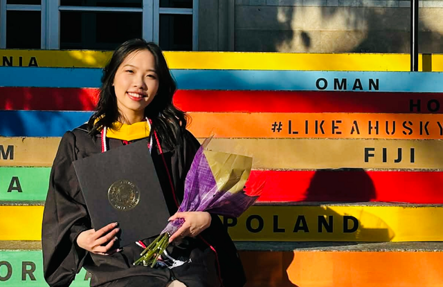 Hương Ly tốt nghiệp bằng Thạc sĩ tại Đại học Northeastern, hồi tháng 5/2023. (Ảnh: NVCC)
