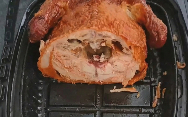 Nửa con gà quay do một sinh viên đại học chặt