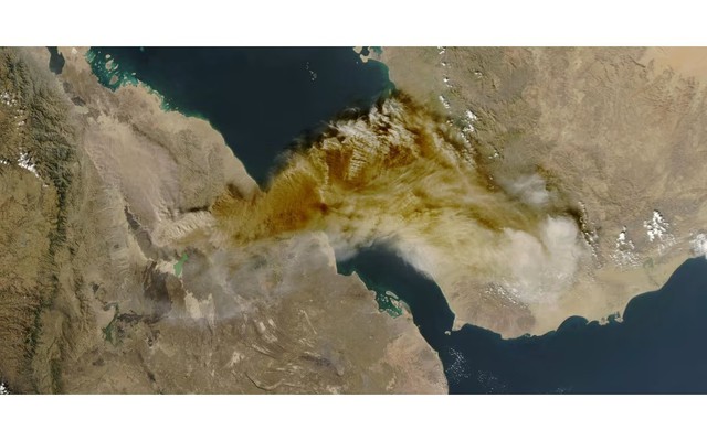 Vụ phun trào có thể quan sát thấy từ vệ tinh, với hình ảnh của Cơ quan Hàng không - Vũ trụ Mỹ NASA cho thấy những đám bụi dày đặc bốc lên trời và cuồn cuộn trên Biển Đỏ.