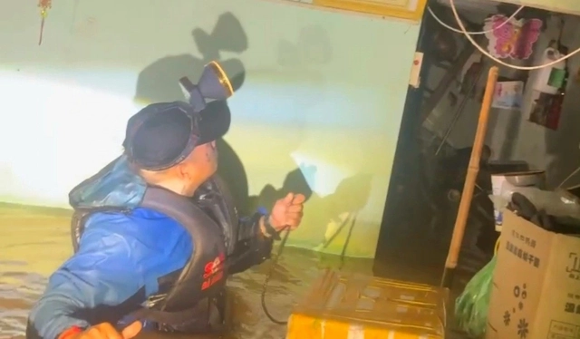 Đội SOS Đà Nẵng tiếp cận ngôi nhà đã nhập hơn 1 mét, cụ già phải leo lên gác tránh lũ.
