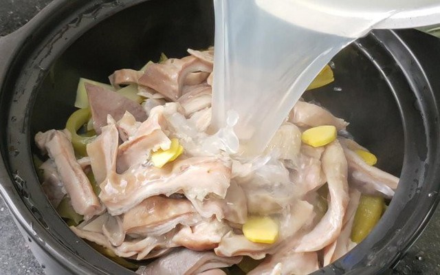 - Sơ chế kỹ: Lộn trái dạ dày, rửa sạch với muối, gừng và rượu để khử mùi, sau đó tráng lại nhiều lần với nước sạch.