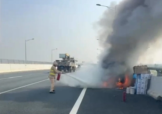 Ô tô bốc cháy trên cao tốc Hà Nội - Hải Phòng