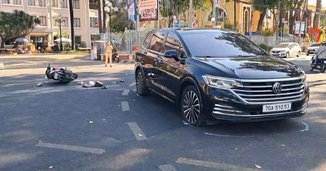 Vụ tai nạn xảy ra chiều 30/4, tại nút giao giữa đường Rạch Gầm và đường Hùng Vương, phường Mỹ Tho, tỉnh Đồng Tháp. Thời điểm này, xe ô tô con 7 chỗ từ đường Rạch Gầm rẽ trái vào đường Hùng Vương.