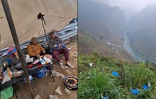 Hình ảnh trong clip cũng cho thấy khu vực phía dưới vách đá, cạnh lều xuất hiện nhiều rác thải, chủ yếu là túi nilon và các vật dụng sinh hoạt do du khách để lại, gây ảnh hưởng xấu đến cảnh quan môi trường của danh thắng.