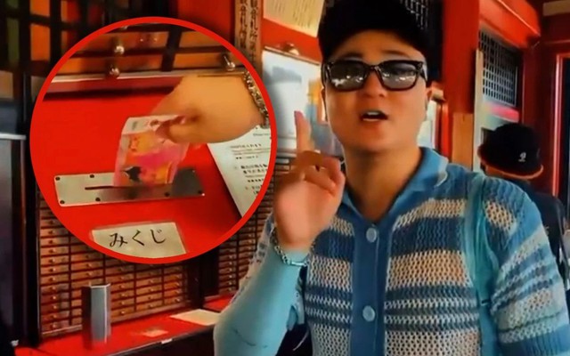 Trong video, người đàn ông này rút được thẻ số 68 và nhận được tờ luận quẻ có chữ "kichi" (nghĩa là may mắn).