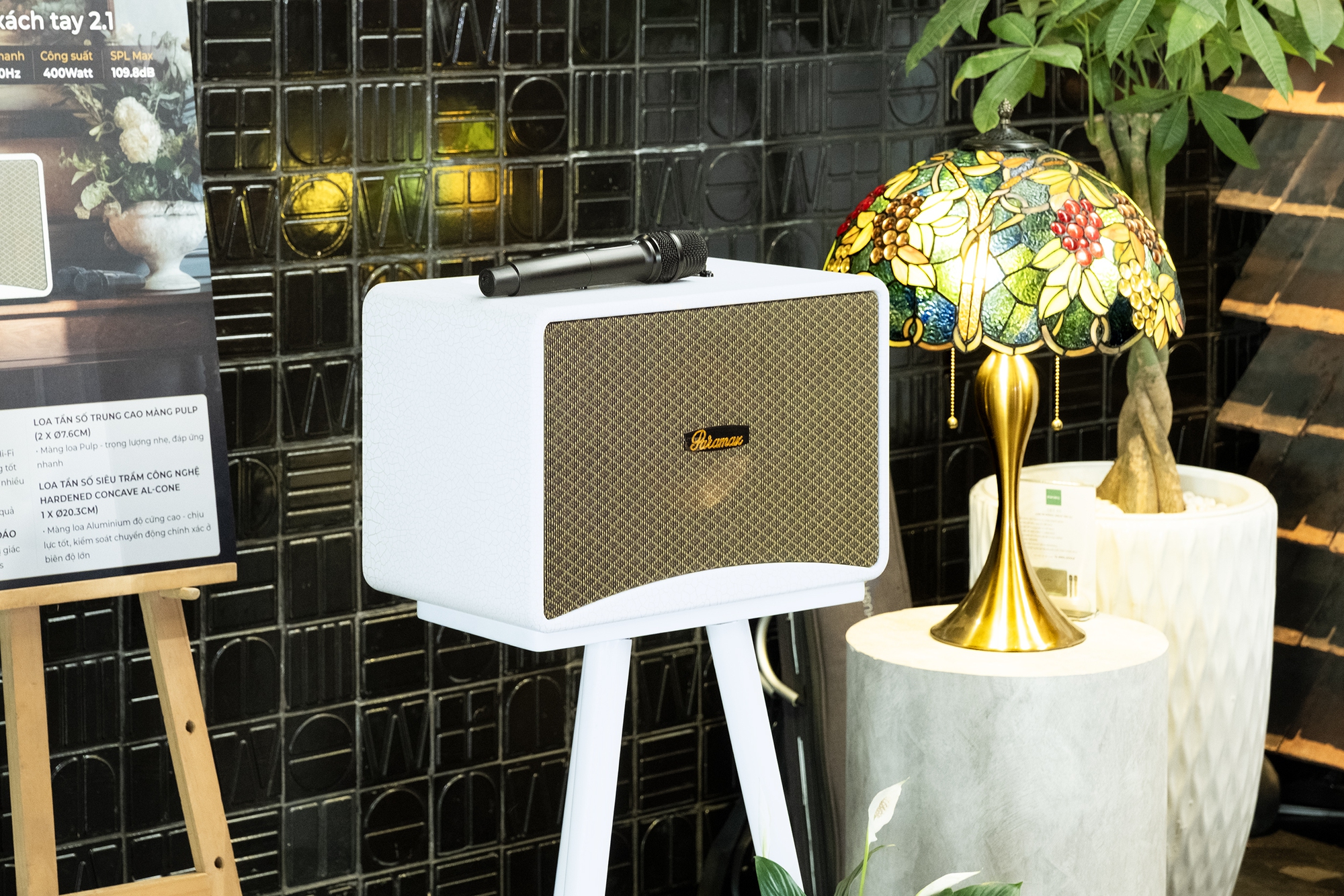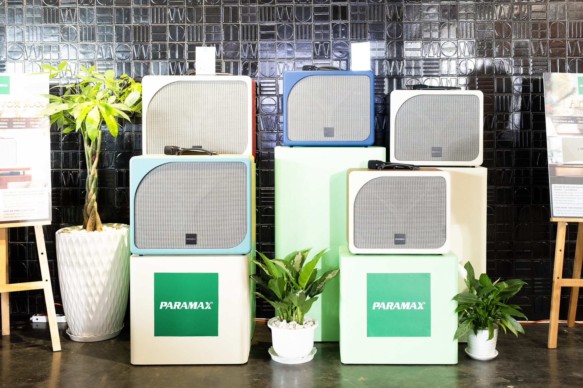 Ở mảng loa xách tay, PARAMAX Art 88 được giới thiệu với cấu hình 2.1, tích hợp loa siêu trầm riêng. Trong khi đó, bộ đôi PARAMAX Evox và PARAMAX Evox Max hướng đến nhu cầu sử dụng ngoài trời hoặc không gian rộng với mức công suất cao hơn.