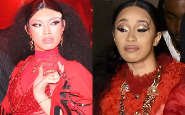 Tuy nhiên, spotlight của đêm tiệc lần này lại thuộc trọn về Pháp Kiều. Nam rapper khiến dân tình "đứng hình" khi hóa thân thành Cardi B trong lần cô tham dự sự kiện thời trang và "đụng độ" với đối thủ truyền kiếp Nicki Minaj. Không chỉ mô phỏng lại outfit đỏ rực và layout makeup gốc, Pháp Kiều còn gây bão khi tái hiện chi tiết gây sốc nhất trong sự kiện: cục u to trên trán của Cardi B sau vụ ẩu đả đình đám năm nào.