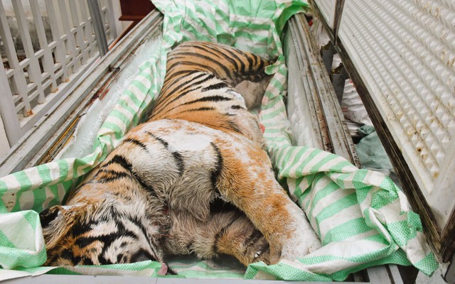 Hai cá thể hổ thuộc Nhóm IB, tổng trọng lượng gần 400kg, được cấp đông và cất giấu trong hầm xây kiên cố.