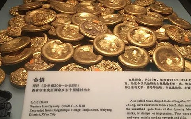 Năm 1990, người nông dân may mắn ở Thiểm Tây, trong lúc đào một cái giếng mới để cung cấp nước cho vườn rau đang khô hạn, đã gặp phải một vật cản cứng ở độ sâu khoảng 3-4 mét. Ông đã dùng xẻng cẩn thận xới đất lên và kinh ngạc phát hiện ra một đống lớn vật thể hình tròn, lõm ở giữa và lồi xung quanh. Đó chính là "bánh vàng" (tiền vàng cổ). Tổng khối lượng số vàng mà người nông dân này đào được lên tới 60 kg.