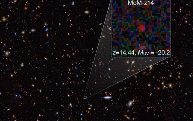 Nhóm nghiên cứu đẫn dầu bởi TS Rohan Naidu từ Viện nghiên cứu Vật lý thiên văn và không gian Kavli của Viện Công nghệ Massachusetts (MIT - Mỹ) đã sàng lọc dữ liệu của James Webb và xác định vật thể MoM-z14, là thiên hà cổ xưa nhất từng được biết đến.