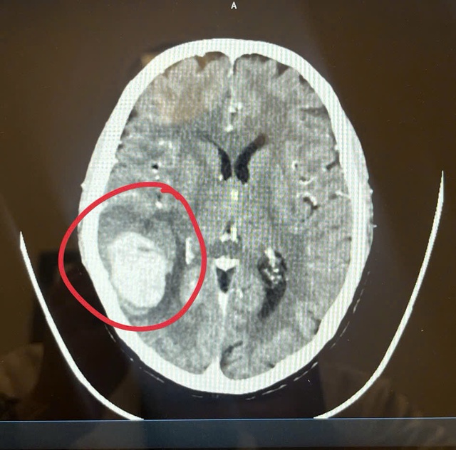Theo bác sĩ Mạnh, khi khám thấy mặt bệnh nhân méo hẳn sang một bên, bác sĩ nghi ngờ bệnh nhân bị liệt dây thần kinh số 7 ngoại biên, chưa loại trừ đột quỵ. Bác sĩ đã cho bệnh nhân chụp CT, kết quả cho thấy não bệnh nhân bị xuất huyết, phù.