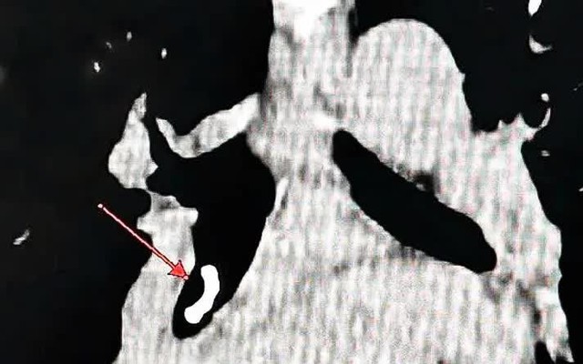 Kết quả nội soi cho thấy có một dị vật nằm sâu trong lòng phế quản - nguyên nhân gây tình trạng viêm kéo dài, sốt và ho dai dẳng suốt nhiều tuần. Dị vật được xác định là một mảnh xương dài khoảng 20 mm, bám chắc vào thành phế quản.
