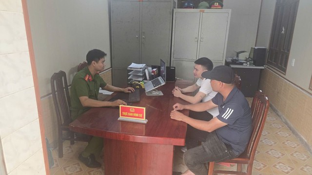 Anh T và anh H. gặp gỡ, làm việc cùng Cơ quan Công an xã. Ảnh: Công an tỉnh Hưng Yên