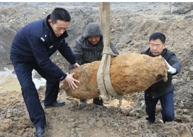 Đội thi công mương nước tại Trung Quốc vô tình chạm phải vật lạ có hình dáng như một quả bom lớn khi đang thực hiện việc đào đất.