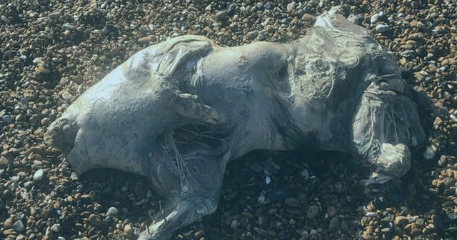 Xác sinh vật lạ trên bãi biển Hove. (Ảnh: Sussex News & Pictures)