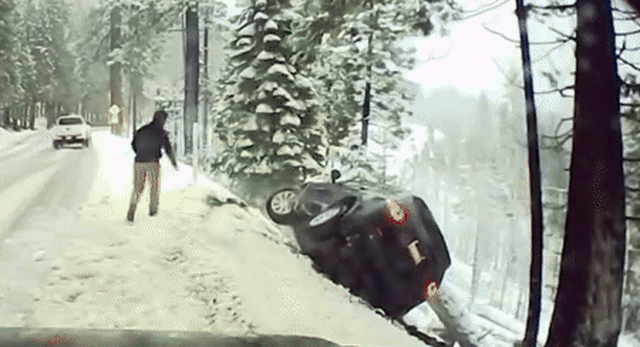 Ngày 25/12, trên tuyến đường núi nguy hiểm U.S. Route 50 ở Bắc California (Mỹ) phủ đầy tuyết sau một cơn bão mùa đông, một chiếc SUV đã mất kiểm soát, xoay tròn và trượt khỏi mặt đường.