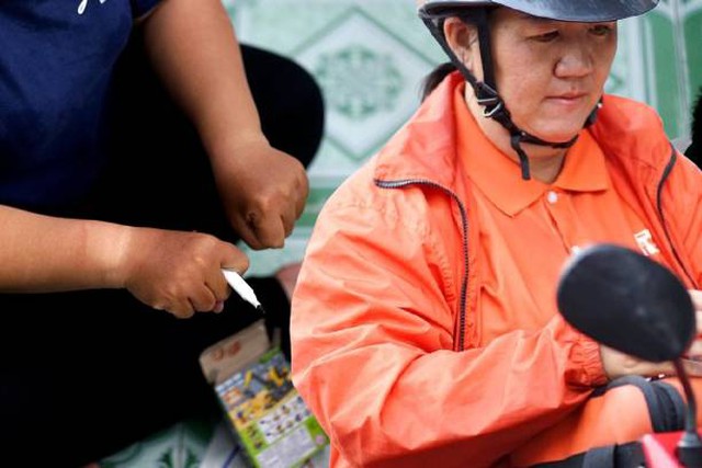 “Hôm nào mưa ướt lạnh như này thì nó cứ giục ‘mẹ ơi, mưa ướt quá, tắt app về đi mẹ’. Nó hối quá nên mình cũng nói ‘ừ mẹ tắt rồi’ nhưng thực ra mình nói vậy thôi, có khi chạy tới tận 11 - 12 giờ khuya.” chị nghẹn ngào kể dưới cơn mưa như trút.