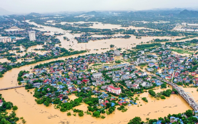 Hình ảnh một số tuyến đường ở Thái Nguyên chìm trong biển nước do ảnh hưởng của hoàn lưu bão Matmo.