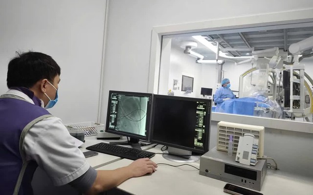 Tại phòng can thiệp mạch, dưới hệ thống chụp mạch số hóa xóa nền (DSA), ekip xác định điểm chảy máu và giả phình ở cả lách và thận, tiến hành nút tắc các nhánh mạch tổn thương. Thủ thuật diễn ra trong khoảng một giờ.