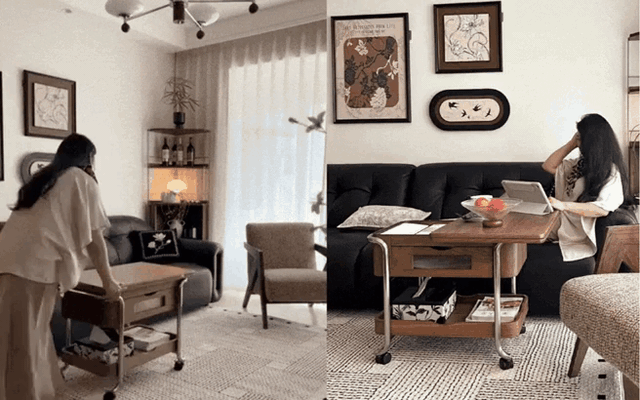 Thay vì một chiếc bàn cố định, nhiều gia đình chuyển sang dùng bàn phụ nhỏ đặt cạnh sofa .