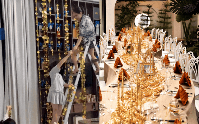 Chia sẻ về lý do tự mình "ôm trọn" phần trang trí dinh thự, phú bà tâm sự: "Mình thích được tự tay set up buổi tiệc cho gia đình và chỉ có thể trang trí cho mình thôi chứ không làm cho ai được. Mình coi đây là thú vui của bản thân mình, có người thích đọc sách xem phim, có người thích làm bánh trồng cây, thì mình thích thay đổi không gian sống, đây là cách mình giảm stress".