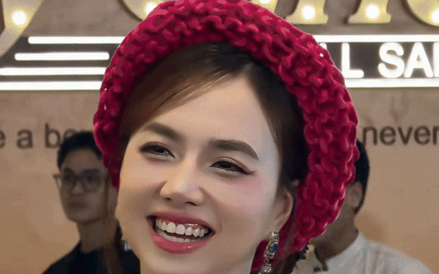 Phần mắt được kẻ eyeliner mảnh, tạo cảm giác sắc sảo nhưng vẫn mềm mại, kết hợp cùng phấn má hồng nhẹ giúp tổng thể thêm phần rạng rỡ. Màu son hồng đào tươi trẻ càng tôn thêm nước da sáng. Nữ diễn viên lựa chọn kiểu tóc búi tết đi kèm mấn đỏ cùng thiết kế cổ yếm cách điệu của Thuỷ Design House, tạo cảm giác vừa duyên dáng vừa nữ tính khiến người xem khó có thể rời mắt.