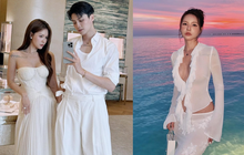 Phương Oanh khoe trọn visual ngọt ngào khi diện chiếc váy trắng dáng dài của thương hiệu Marble Rose, nổi bật với thiết kế ôm nhẹ giúp tôn dáng cao ráo, nuột nà. Thiết kế hai dây vốn kinh điển nên nàng Hậu khéo khoác thêm lớp áo lưới xuyên thấu với họa tiết hoa bản lớn, mang đến hiệu ứng mềm mại, bay bổng và yêu kiều.