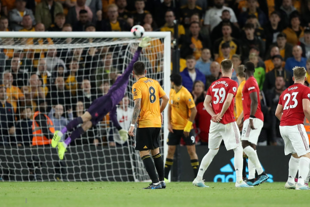 Nhưng các cổ động viên chủ nhà cũng chẳng phải tiếc nuối quá lâu. Chỉ 1 phút sau, đón bóng từ khu vực vòng cung trước vùng cấm, Ruben Neves "vẽ" một đường cong hoàn hảo đánh bại De Gea.