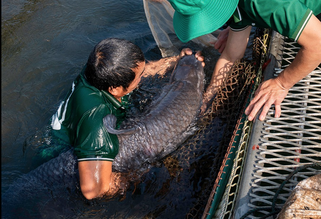 Cá trắm đen 30 kg được nuôi trong lòng hồ Hòa Bình.